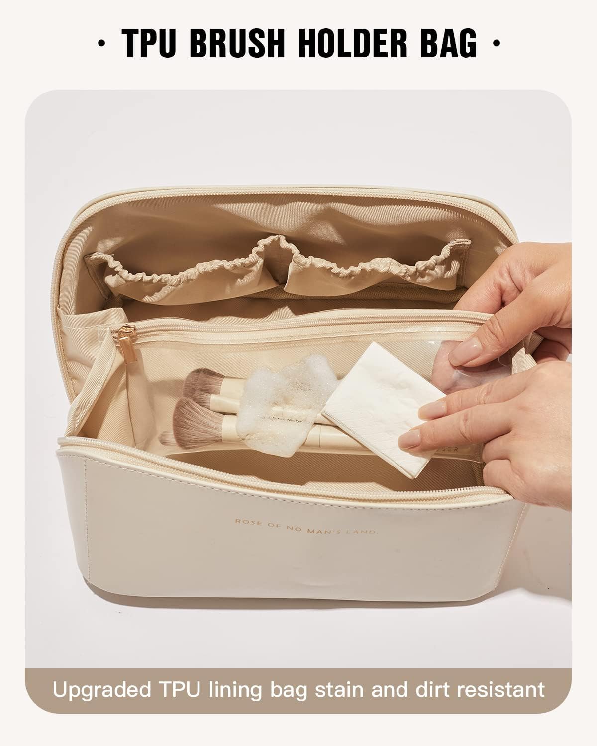 • Large Capacity Cosmetic Makeup Bag: Our cosmetic bag has a steel wire inserted in the opening, which makes the makeup bag more three-dimensional and more comfortable to hold.